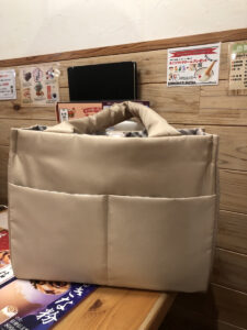 〈1〉「ノリタケコラボトートバッグ」は7000円の福袋と別デザイン。“ボタンを開けた状態ならばA4サイズも入る”気持ち小ぶりなトートバッグで、より日常使いしやすい落ち着いた色味。その分裏地は青で鮮やかな彩りになっている。ノリタケ&コメダのロゴ入り。